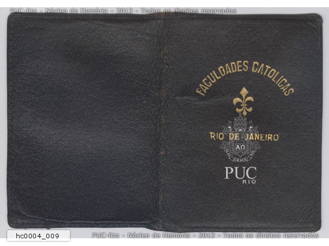 Capa da carteira de estudante de um aluno com os dizeres 'Faculdades Catolicas' |