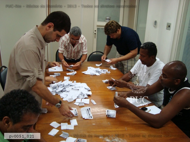Apuração dos votos. Representantes das chapas manipulam as cédulas. |
