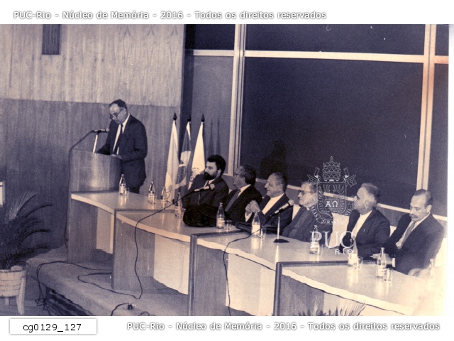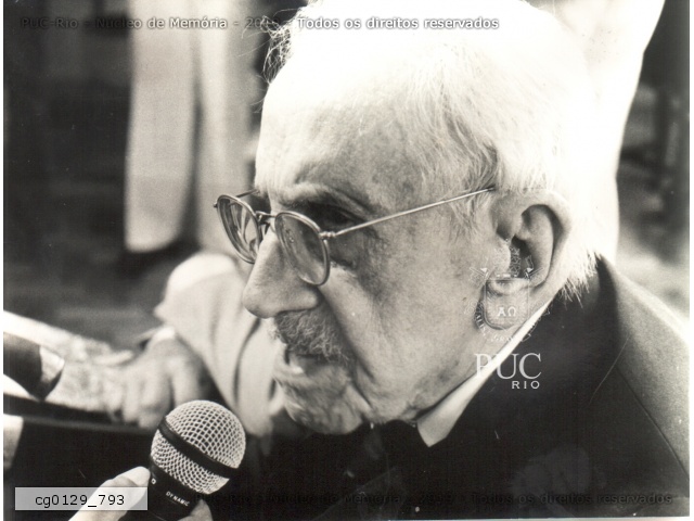 Fotografia do prof. Sobral Pinto em cerimônia em comemoração dos 50 anos da PUC-Rio. |