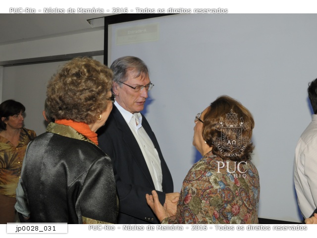 Professor Ardnt von Staa recebe os cumprimentos de convidadas. |