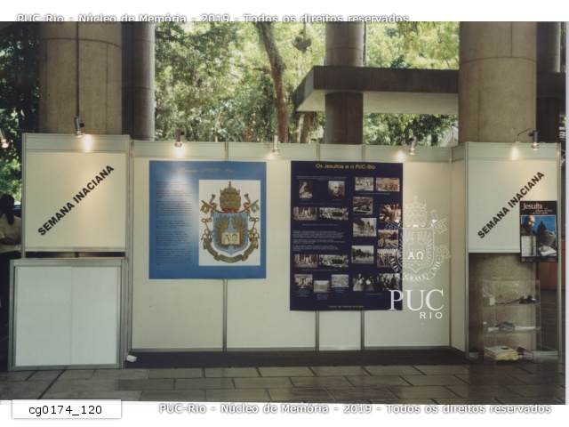 Estandes com cartazes sobre os jesuítas e a PUC-Rio durante a Semana Inaciana (24 a 26/10/2000). Na programação, palestras e eventos culturais. |