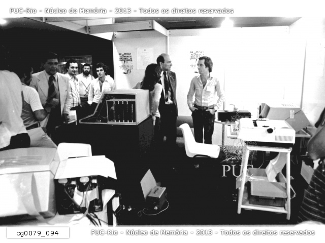 Visita do Reitor pe. Mac Dowell S.J. aos stands do XIII Congresso Nacional de Processamento de Dados. A PUC-Rio tinha um stand no qual foram exibidos os produtos dos programas de pesquisa do LED - Laboratório de Eletrônica Digital, e do LESC - Laboratório de Sistemas de Computação. |