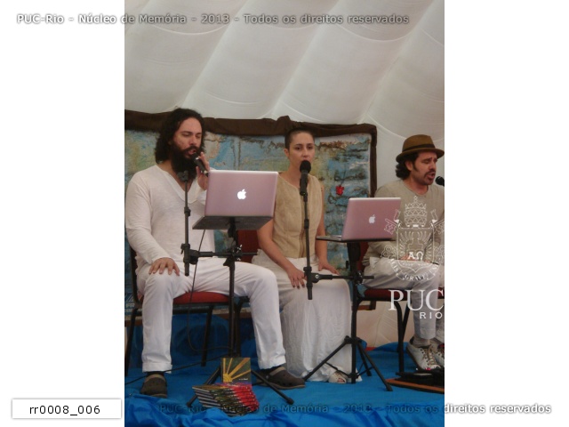Grupo Organismo, em sua apresentação musical, durante o lançamento do livro Gritos Grisalhos, de Sérgio Bruni. |