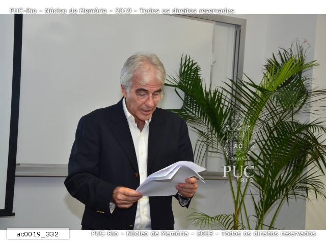 O ex-diretor do Departamento de Física Professor Antonio Carlos Oliveira Bruno, fala durante a posse do Professor Welles Antonio Martinez Morgado como diretor do Departamento de Física da PUC-Rio. |
