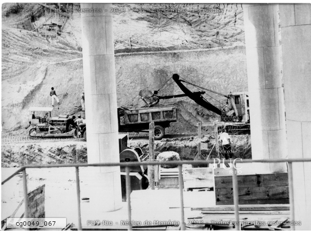 Desbaste do morro para a construção do prédio para a instalação do acelerador Van de Graaff. |