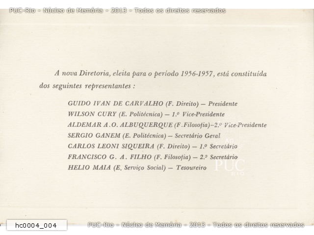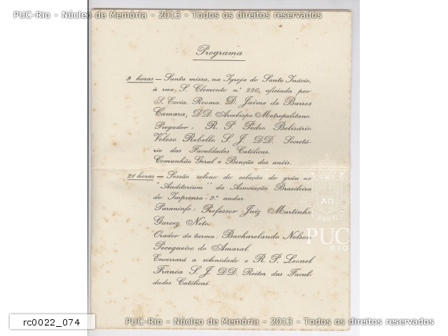 Documentos das estantes dos Centros - Exposição PUC-Rio 70 anos - rc0022_074 |