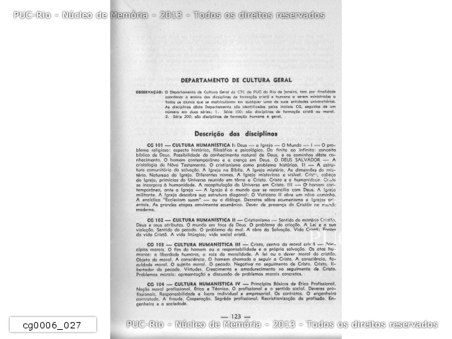 Página 123 do Catálogo Escolar do Centro Técnico Científico. Departamento de Cultura Geral. |