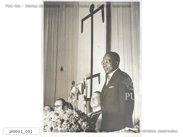 Fala do presidente do Senegal, Léopold Sedar Senghor, em visita à PUC-Rio. Ele proferiu a conferência Realidades Africanas. |
