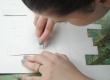 Foto artística em que um desenho do pilotis feito em papel se funde a paisagem original que está de fundo. |
