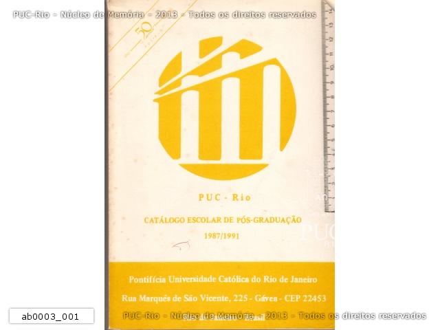 Catálogo Escolar de Pós-Graduação da PUC-Rio - 1987/1991. - ab0003_001 |