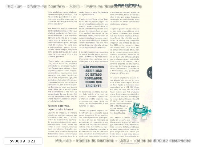 Matéria da Revista PONTES nº1 sobre 'O papel do Estado na Economia' (página 21) |