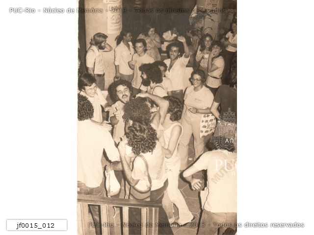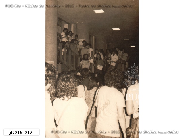 Alunos comemoram o resultado das eleições estudantis. Cartaz chapa Unidade, camiseta chapa Mutirão. |