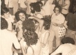 Mesas de apuração dos votos. Alguns representantes das chapas sem camisa por causa do calor. Cartaz da chapa Mutirão na parede. |