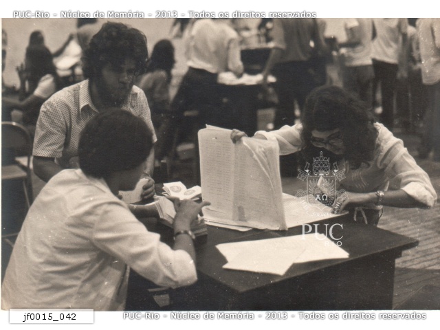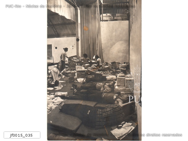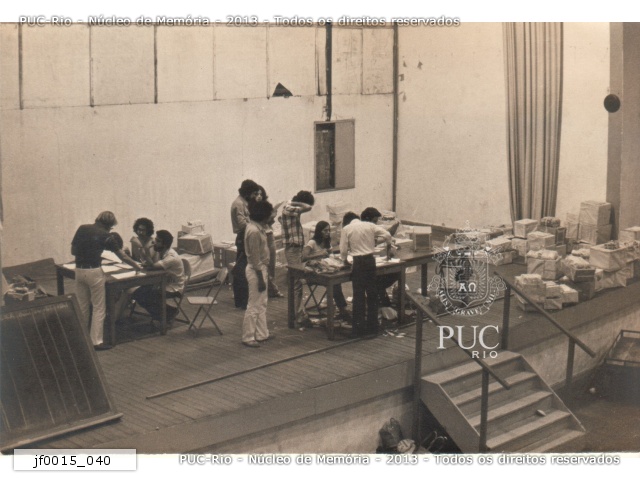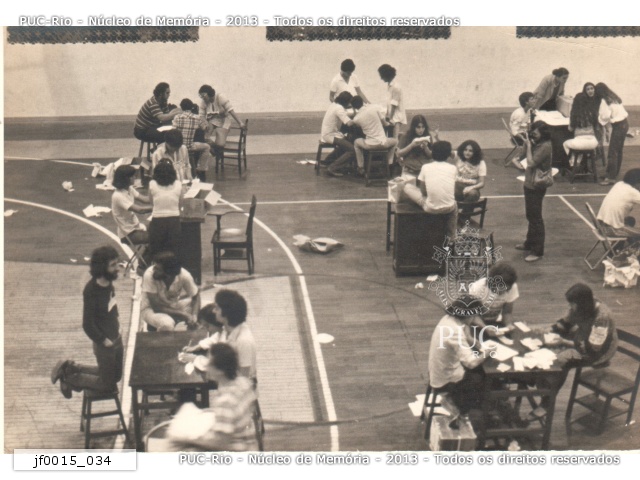 No palco do Ginásio, pacotes de votos vindos de diversos locais do Estado do Rio. Organização do processo de apuração. |