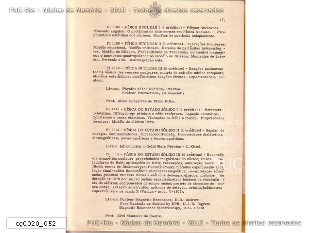 Catálogo Oficial da Escola Graduada de Ciências e Engenharia - 1968-1969 - cg0020_047 |
