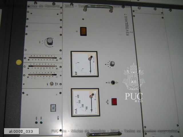 Equipamentos dos laboratórios. Está escrito no aparelho "RSV", "PMV 02" e "HVG 7". |