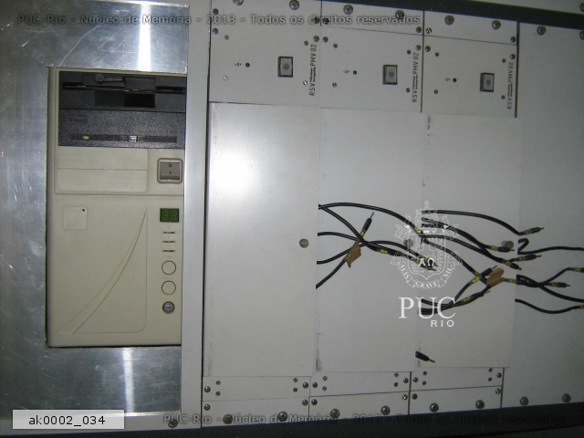 Equipamentos dos laboratórios. Está escrito no aparelho "RSV Präzisions messgeräte PMV 02". Microcomputador na parte de cima, possivelmente um PC 386 ou 486, com unidade de disquete 5 1/4. |