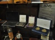 Medalhas, esculturas, diplomas, flâmulas, pins e bottons do armário da sala de entrada da reitoria recebidos de instituições de ensino superior e empresas ou confeccionados pela PUC-Rio. |