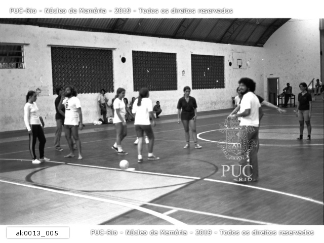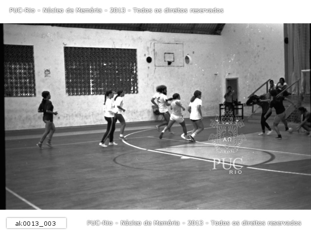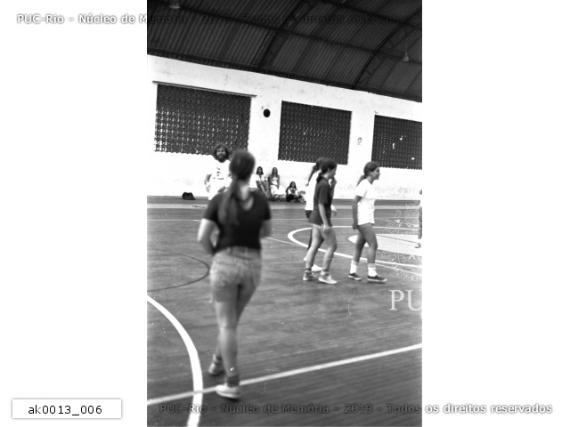Jogo de voleyball no antigo ginásio. Times não identificados. |