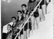 Atletas com o uniforme da PUC-Rio em uma das escadarias da Universidade. Parecem ser da equipe de remo. |
