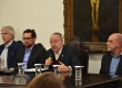 O Vice-reitor Acadêmico, prof. José Ricardo Bergmann; o professor do Departamento de Geografia, Alexandro Solórzano; o reitor padre Josafá Carlos Siqueira S.J. e o professor do Departamento de Geografia, Rogério Ribeiro na cerimônia de posse do prof. Alexandro Solórzano, como novo diretor do Departamento de Geografia e Meio Ambiente.