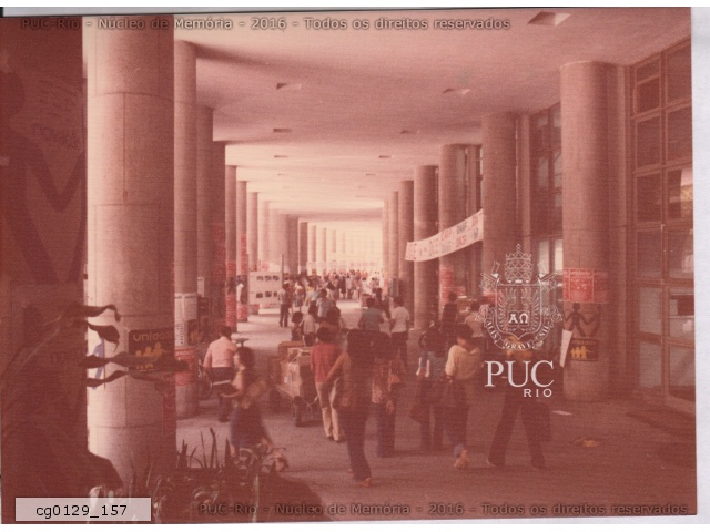 Fotografia publicada em matéria do Jornal do Brasil publicada em 29/03/1977 intitulada "Assembléia de mil alunos da PUC decide greve para hoje contra preço e punições". A matéria destaca que os alunos da PUC-Rio, reunidos em assembleia em 28/03/1977, convocaram greve geral para o dia 29/03/1977 depois de receberem da Reitoria respostas negativas para três reivindicações: rebaixamento das anuidades no mesmo valor de 1976; revogação da suspensão de quatro alunos que, segundo relato do Reitor Pe. João MacDowell S.J., foram suspensos porque houve "tentativa de barrar aos colegas acesso à tesouraria, desacato a professores e insultos públicos"; e relaxamento das multas de 5% sobre mensalidades pagas em atraso. |