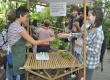 Mulheres não identificadas participam da feira de trocas de mercadorias e produtos para a comunidade PUC-Rio. |