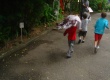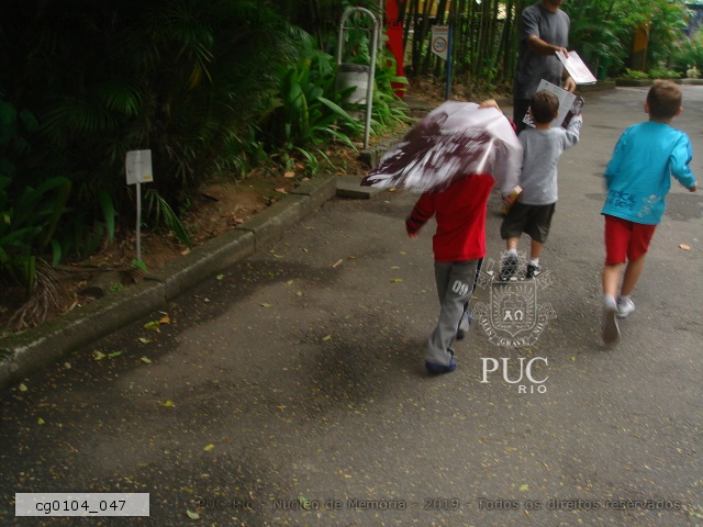 Crianças em visita a Exposição PUC-Rio 70 anos brincam com o folder da Exposição. |