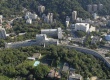 Vista aérea da PUC-Rio. Estão visíveis também o Túnel Acústico da Autoestrada Lagoa-Barra, o Minhocão, o Planetário da Gávea e o Circo Esperança. |
