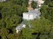 Foto aérea do campus Gávea da PUC-Rio com destaque para a Igreja do Sagrado Coração de Jesus à esquerda e, ao centro, o Solar Grandjean de Montigny. |