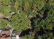 Foto aérea do campus Gávea da PUC-Rio com destaque para a Vila dos Diretórios na parte inferior, a Igreja do Sagrado Coração de Jesus à esquerda e o Solar Grandjean de Montigny ao centro. |