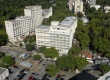 Foto aérea do campus Gávea da PUC-Rio com destaque para a Vila dos Diretórios na parte inferior e o Solar Grandjean de Montigny na parte superior. |