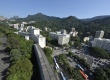 Foto aérea do campus Gávea da PUC-Rio e a serra da Carioca ao fundo. |