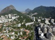Foto aérea dos bairros do Leblon e da Gávea. Destaque para a praia do Leblon e o Morro Dois Irmãos ao fundo, o campus Gávea da PUC-Rio ao centro e, ao lado direto superior, o Parque da Cidade e a Rocinha. |