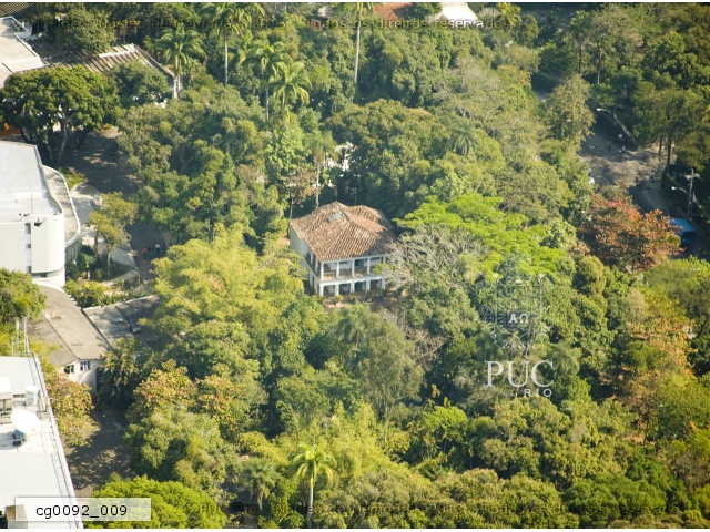 Foto aérea do bairro da Gávea. Em destaque o campus da PUC-Rio e o Conjunto Residencial Marquês de São Vicente. |