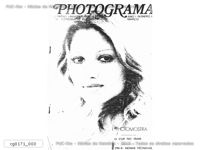 Capa da revista Photograma, ano 1, número 1, produzida pelo CUF. Matérias sobre a Photomostra, O CUF no IBAM e TRI-X: novas técnicas. |