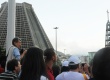 Alunos em frente ao Ginásio aguardam o resultado da apuração. |