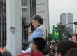 Fotógrafo Evandro Teixeira observa a chegada do Papa Francisco. |