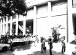 Alunos reunidos na frente do portão de entrada da PUC-Rio, na tentativa de permitir a entrada de Miguel Arraes (na foto, do lado direito já dentro da Universidade) e do restante dos estudantes. |