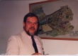 Professor Eurico Borba, Vice-reitor de Desenvolvimento, em frente a um mapa colorido do campus. |