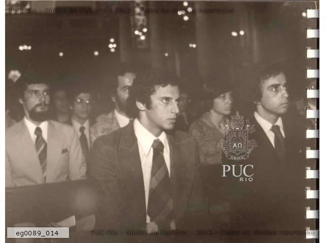 Primeira missa realizada na nova igreja da PUC-Rio, ainda em obras. |