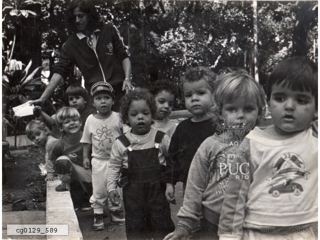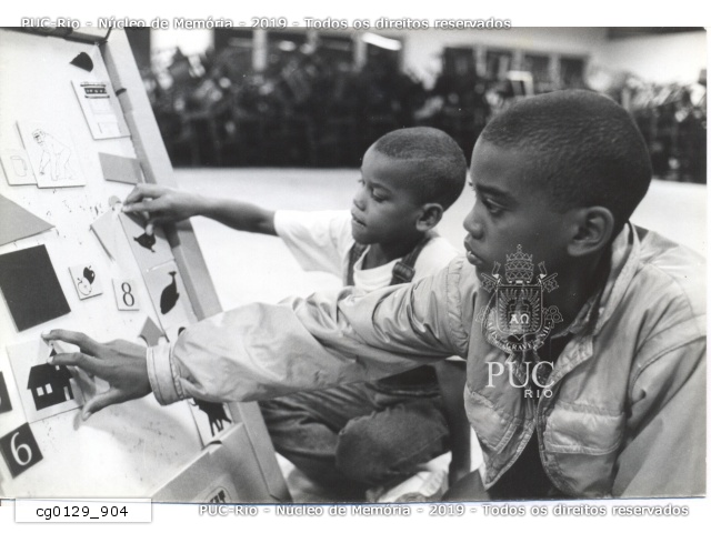 Crianças na barraca da pescaria do I Festival da PUC, evento realizado nos dia 9 e 10 de novembro de 1963 com doações para arrecadar fundos para expansão dos prédios do campus da Rua Marquês de São Vicente. |