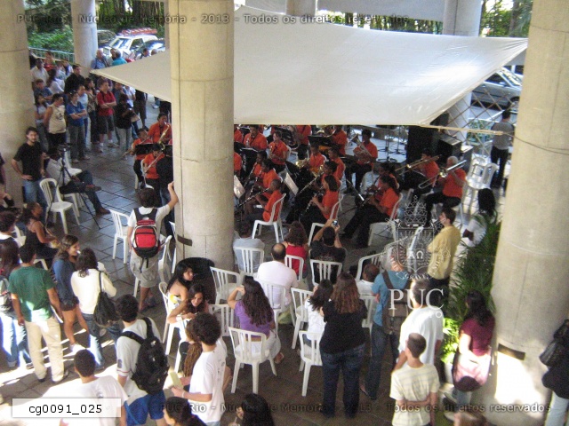 Abertura do evento, com banda de música. Vista da escada da Ala Kennedy. |
