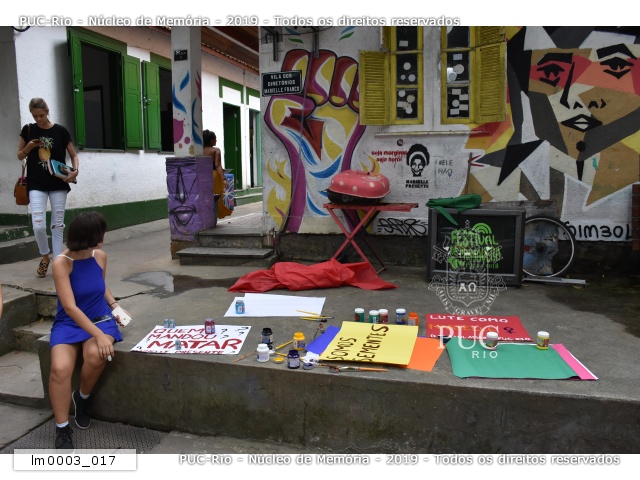 Oficina de cartazes na homenagem à Marielle Franco. |