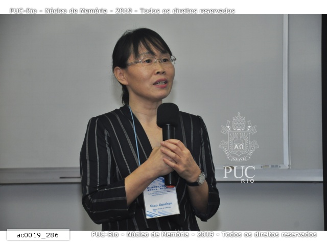 A Profa. Ana QIAO Jianzhen e diretora chinesa do Instituto Confucius, Pontifícia Universidade Católica do Rio de Janeiro (IC PUC-Rio) na II Conferência Internacional de Estudos sobre a Imigração chinesa para o Brasil: Relações Interculturais. |