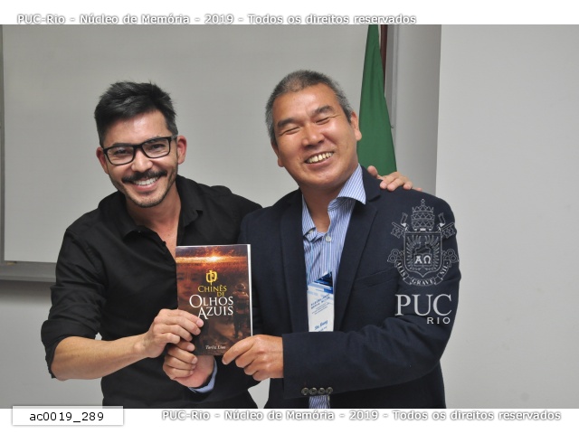 O autor do livro Chinês de Olhos Azuis, Tarliz Liao. E o professor Dr., Shu Changsheng, em Literatura Moderna Chinesa do DLO/FFLCH/USP, no evento de lançamento do livro durante a II Conferência Internacional de Estudos sobre a Imigração chinesa para o Brasil: Relações Interculturais. |