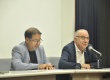 O decano do CTCH, professor Julio Diniz e o Reitor da faculdade, padre Josafá Carlos Siqueira na homenagem ao poeta e crítico literário Gilberto Mendonça Teles. |