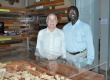 O neto do professor Gustavo Sénéchal na entrada da exposição. |
