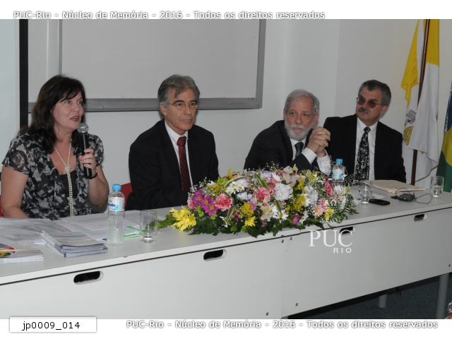 Palestrantes da mesa redonda A Universidade e a Empresa, integrante da série A Universidade e a realidade nacional. O evento fez parte das comemorações dos 40 anos da PUC-Rio. |