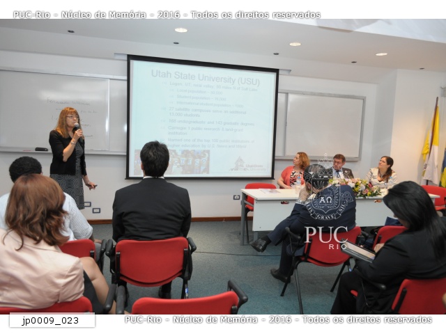 Apresentação da Utah State University em mesa-redonda. |